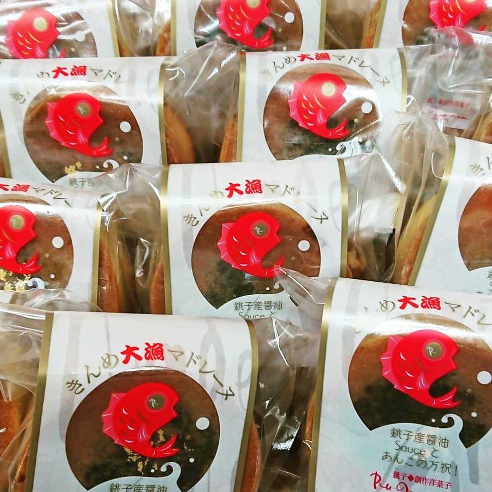 自家製餡子をマドレーヌ生地で閉じ込め焼き上げました。餡子の中には銚子の醤油ソースが入っています。消費期限は製造日から60日常温保存となります。箱6個入の販売となります。こちらの商品は発売から4年がたち年間3万個の販売実績があり、少しづつリピーターさんが増え、ルノワ一押し商品となっています。お祝いのお返しにも、おやつ菓子にも利用しやすいので是非一度ご賞味ください。商品は包装した状態でお送りいたします。